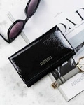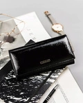Skórzany portfel damski lakierowany czarny na zatrzask - 4U Cavaldi H24-1-SH9-BL