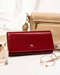 Duży skórzany portfel damski na zatrzask czerwony RFID - Rovicky RV-1680144-BCA