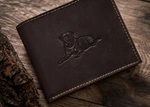 Duży skórzany portfel męski brązowy poziomy wzór z psem — Always Wild N992-CHM-DOG-2