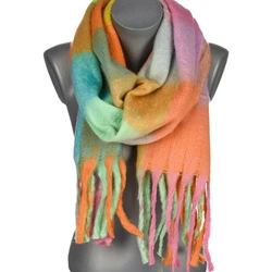 Kolorowy szalik damski ciepły w kratę z frędzlami - Versoli szal-65