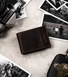 Mały skórzany portfel męski ciemnobrązowy — Buffalo Wild N1240-H