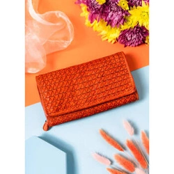 Pomarańczowy portfel damski skórzany z geometrycznym wzorem - Rovicky R-N22-ZPT