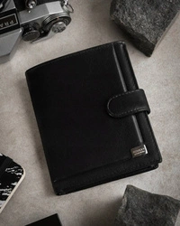 Elegancki skórzany portfel męski z zapięciem czarny - Rovicky 22323L-RVTP