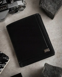 Elegancki skórzany portfel męski czarny na dowód rejestracyjny - Rovicky 22321L-RVTP