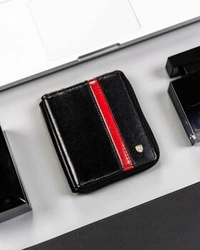 Zestaw prezentowy: skórzany portfel damski i brelok czerwony - Rovicky R-ZD-604-BG