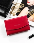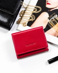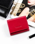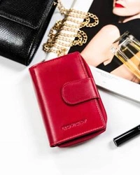 Mały skórzany portfel damski na zatrzask czerwony — Rovicky R-RD-41-GCL