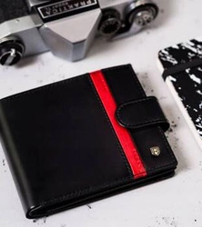 Skórzany portfel męski z zapięciem czarno-czerwony — Rovicky N4-RVT-6870