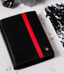 Skórzany portfel męski z czerwonym paskiem czarny — Rovicky N992-RVTP