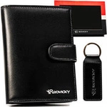 Zestaw prezentowy: Elegancki skórzany portfel męski i brelok czarny — Rovicky R-SET-M-N4L-KCS