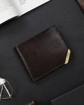 Skórzany portfel męski ze złotym akcentem, skóra brązowa licowa Rovicky N993-RVTM-GL-6583 D.