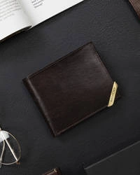 Skórzany portfel męski ze srebrnym akcentem, ciemno brązowy Rovicky N993-RVTM-GN-6620 D.
