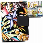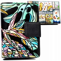 Kolorowy skórzany portfel damski na zatrzask - Rovicky R-N22-ART