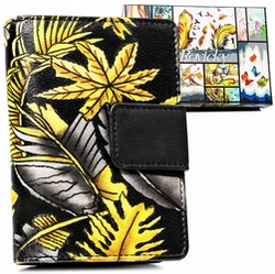 Skórzany portfel damski na zatrzask kolorowy w kwiaty - Rovicky R-N22-ART