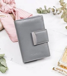 Skórzany portfel damski szary z zapięciem - 4U Cavaldi RD-09-GCL