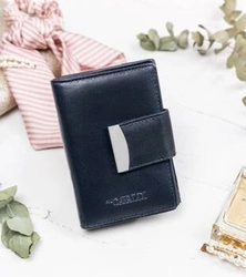 Skórzany portfel damski z zapięciem granatowy - 4U Cavaldi RD-09-GCL