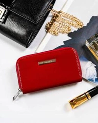 Portfel damski na suwak czerwony ze skóry ekologicznej - 4U Cavaldi ABT-03-BL