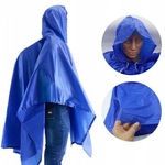 Poncho peleryna przeciwdeszczowa z kapturem niebieska