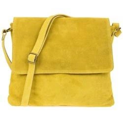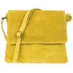 Skórzana torebka damska listonoszka z klapką zamszowa żółta - Vera Pelle B67