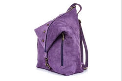 Skórzany plecak damski miejski zamszowy fioletowy Vera Pelle W14