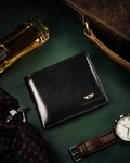 Skórzany portfel męski czarny składany — Peterson 380-P