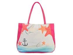 Torba na plażę kolorowa z muszelkami różowa Xxl H15