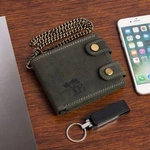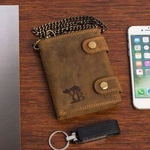 Skórzany portfel męski z łańcuchem brązowy nubuk - Beltimore R78