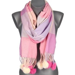 Szalik damski bawełniany różowy z pomponami AX-121-14