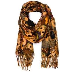 Szalik damski bawełniany ciepły dwustronny pomarańczowy w sowy AX-122-4