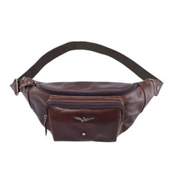 Skórzana saszetka męska nerka biodrowa brązowa vintage - Aeronautica Militare AM-351 MO