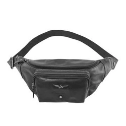 Skórzana saszetka męska nerka biodrowa czarna vintage - Aeronautica Militare AM-351 NE