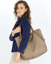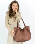 Duża torba damska pleciona shopper brązowy worek - MARCO MAZZINI v186f