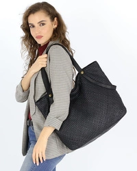 Duża torebka damska czarna pleciona shopperka skórzana - MARCO MAZZINI v244a