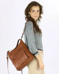 Skórzana torebka damska plecak camel brąz 2w1 - MARCO MAZZINI R304b