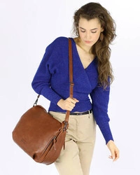 Skórzana torebka damska hobo bag camel brązowy - MARCO MAZZINI R76b