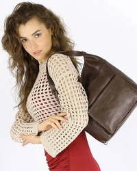 Duża skórzana torba damska worek shopper ciemnobrązowy - MARCO MAZZINI vs56c