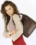Skórzna torebka damska pleciona shopper ciemnobrązowy - MARCO MAZZINI v186e