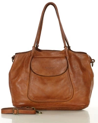 Skórzana torebka damska na ramię camel shopper bag - MARCO MAZZINI v86a
