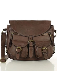Skórzana listonoszka damska torebka na ramię z kieszeniami brązowa - Marco Mazzini v149e