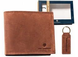 Zestaw prezentowy: skórzany portfel męski brązowy, etui i brelok - Peterson SET3-N78-VT