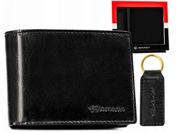 Zestaw prezentowy: skórzany portfel męski i brelok czarny - Rovicky R-SET-M-N003-GVT