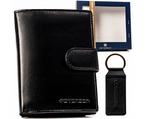 Zestaw prezentowy: skórzany portfel etui i brelok czarny — 4U Cavaldi ZECAV-03