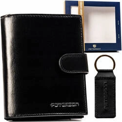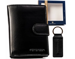 Zestaw prezentowy: skórzany portfel męski i brelok czarny — Peterson SET-M-1549L-KCS