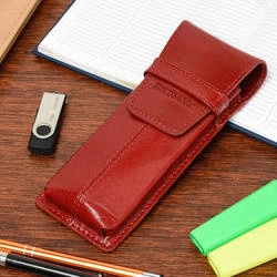 Skórzany piórnik na długopisy, pióro, czerwone Beltimore J05