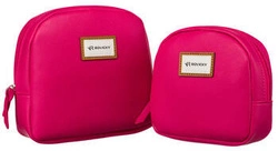 Zestaw dwóch kosmetyczek damskich różowych ze skóry ekologicznej - Rovicky R-261