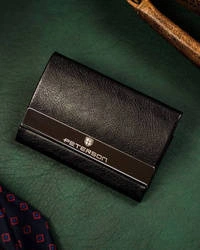 Klasyczne etui na wizytówki czarne ze skóry ekologicznej — Peterson PTN M6106