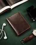 Zestaw prezentowy: skórzany, brązowy portfel męski i woda toaletowa — Peterson
