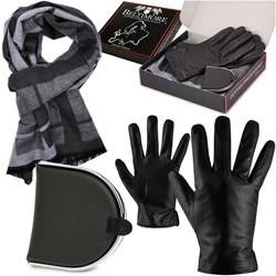 Zestaw skórzany męski - skórzane rękawiczki, szalik, bilonówka U80