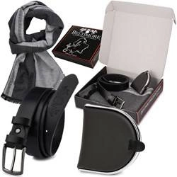 Zestaw skórzany męski - skórzany pasek, szalik, bilonówka U87