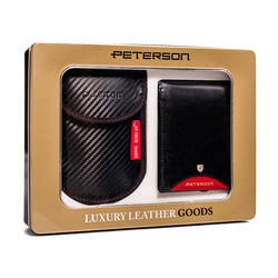 Zestaw prezentowy: portfel męski ze skóry naturalnej i etui na kluczyk i karty — Peterson