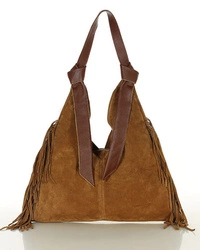 Torebka damska brązowa zamszowa z frędzlami worek skórzany MARCO MAZZINI s290a